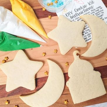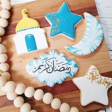 Star shaped cookie with Ramadan Mubarak in arabic calligraphy. Will be individually packaged in cellobags to lock in freshness.